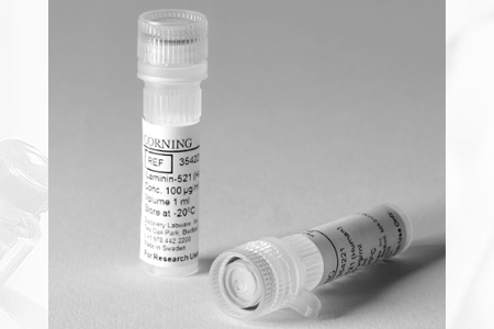 Corning? rLaminin-521, Human, 1mg (10 x 100μg Vials)Corning rLaminin-521 (Human) is a heterotrimer composed of α5, β2, and γ1 chains expressed in a mammalian cell culture system. rLaminin-521 (Human) supports long-term self-renewal of human pluripotent stem cells (hPSC), including embryonic stem cells (hESC) and induced pluripotent stem cells (iPSC) in defined and xeno-free environments. rLaminin-521 provides additional benefits, including ROCK inhibitor independent single cell expansion of PSCs, which improves hPSC culture ease and efficiency.